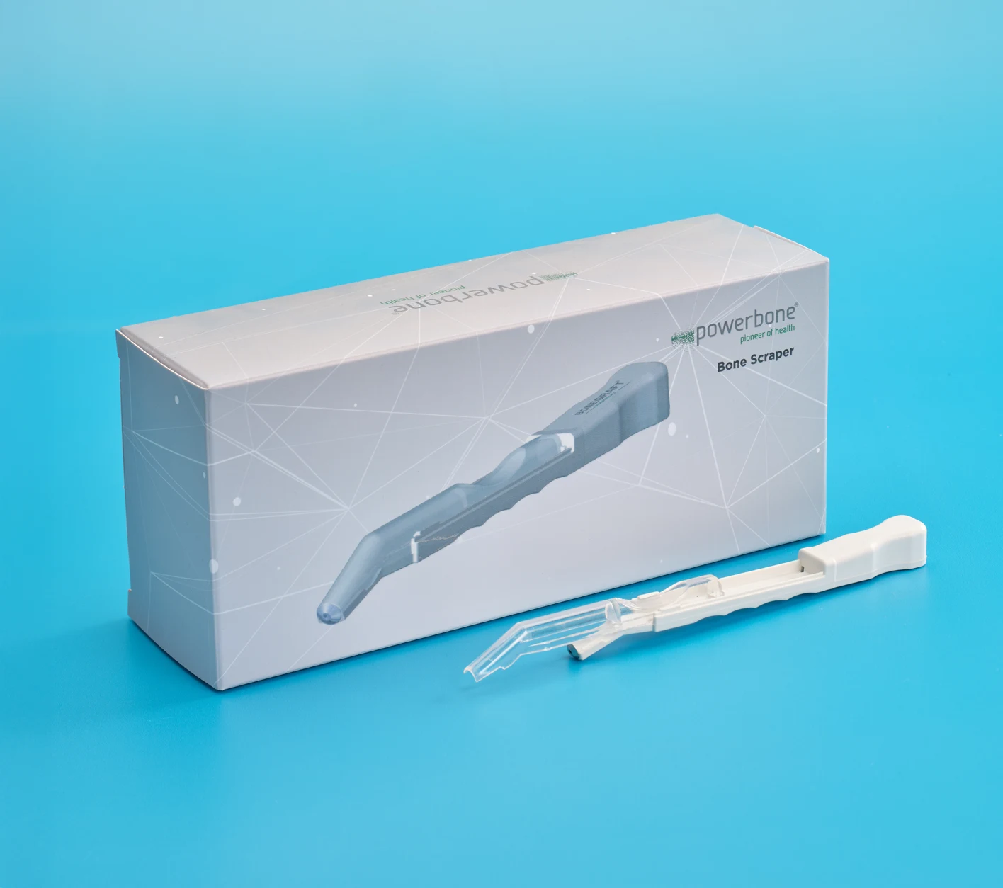 Powerbone Bone Scraper is a disposable surgical tool designed to harvest autogenous bone from intraoral donor sites for regenerative procedures.
